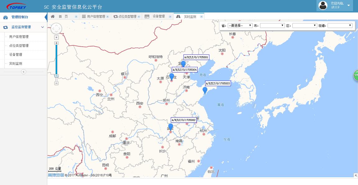 重大危險源在線監(jiān)控及事故預警系統(tǒng) PC端(市級) |
