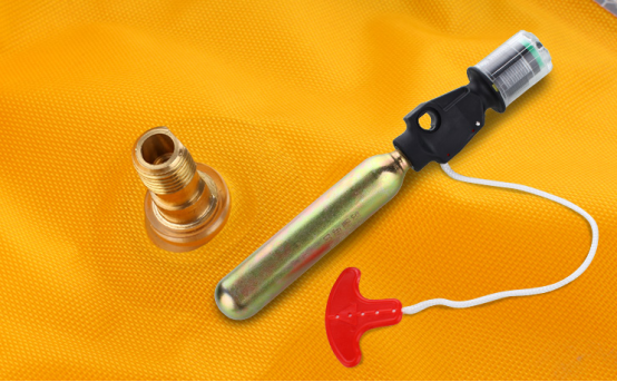 手動(dòng)款:只能手動(dòng)拉動(dòng)拉繩才能激發(fā)裝置充氣,手動(dòng)拉動(dòng)時(shí),將二氧化碳鋼瓶高壓釋放,3-5秒內(nèi)充氣整個(gè)氣囊。