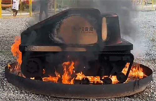 抗高溫防爆消防滅火機(jī)器人采用多項(xiàng)耐高溫防護(hù)專利技術(shù),賦予了機(jī)器人在1000℃高溫環(huán)境中持續(xù)工作30分鐘以上的能力,可以替代消防戰(zhàn)士長(zhǎng)時(shí)間深入危險(xiǎn)的高溫火場(chǎng)進(jìn)行火情偵察和滅火工作,極大地?cái)U(kuò)展了消防救援人員的作戰(zhàn)范圍和能力,為消防救援人員的人身安全提供保障。