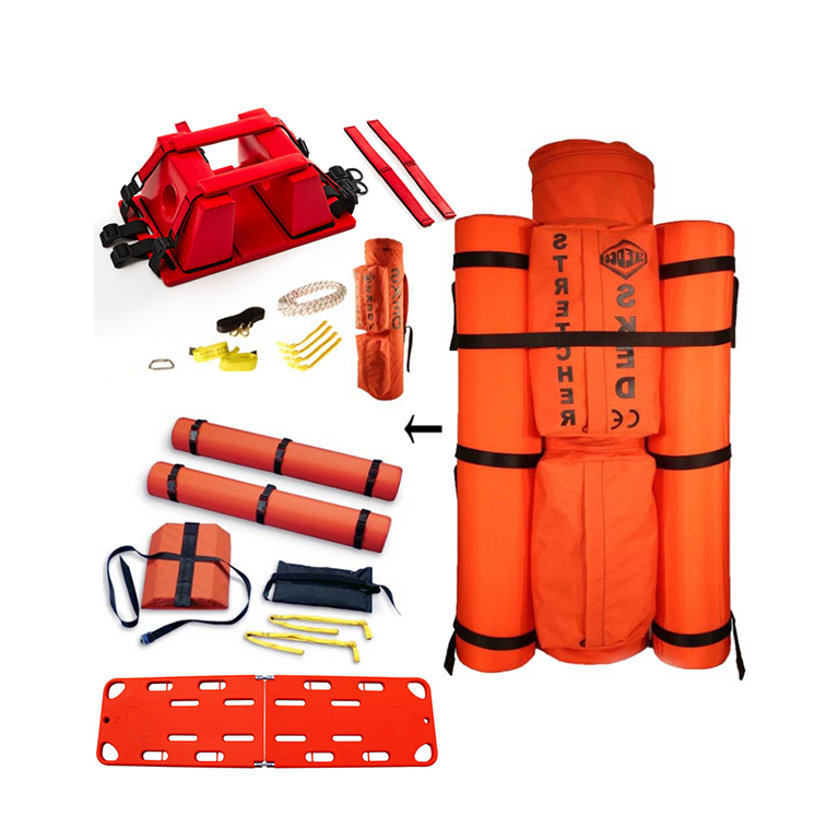 可漂浮救生擔(dān)架材質(zhì):柔韌塑料制成,強(qiáng)度高、耐磨性。可用于水面救援和山地救援;可加設(shè)固定扁帶,可防止拖拽造成損壞。高強(qiáng)度把手8個(gè),工作負(fù)載:400kg,內(nèi)置平板式可拆卸浮力輔助系統(tǒng)和脊柱板固定系統(tǒng),方便固定傷員,配備:梅隴鎖1個(gè)(主軸拉力45kN、橫軸拉力8kN)、鋼制梨型鉤4個(gè)(主軸拉力36kN橫軸8kN)、垂直豎井提升繩1套、浮力輔助部件和脊柱板一套。擔(dān)架浮力:1.6kN。