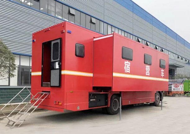 3、整車自行式設(shè)計,機動性能好,適合公路運輸,可提供野外宿營、洗漱、休閑等功能,保障能力強;整車配有空氣調(diào)節(jié)系統(tǒng),生活舒適度好,可雙側(cè)擴展,空間利用率大。