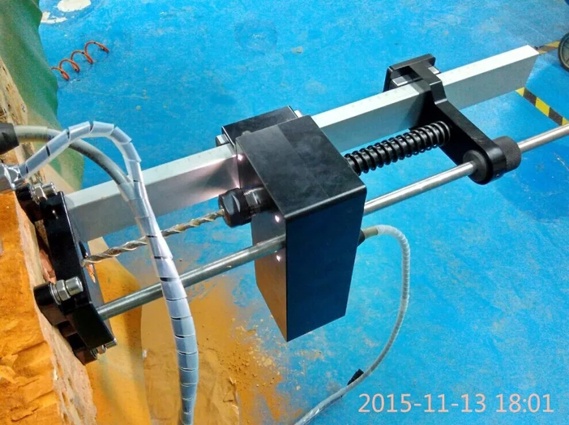 1) ★結(jié)構(gòu)形式:自動推進(jìn)導(dǎo)軌+三角支架+單獨(dú)電源系統(tǒng) 2) ★LED燈光:配有LED探燈,可在惡劣條件下作業(yè) 3) ★推進(jìn)方式: 導(dǎo)軌式自動推進(jìn) 手動推進(jìn) 可自動彈簧式 4) ★自動推進(jìn)導(dǎo)軌:帶刻度指示 5) 轉(zhuǎn)向轉(zhuǎn)速:正反、快慢可調(diào) 6) 工作時間:12小時 7) ★供電方式:外部獨(dú)立電源箱,帶控制系統(tǒng)顯示,48V動力大容量鋰電池供電 8) ★控制系統(tǒng): 可控制導(dǎo)軌自動推進(jìn) 控制單元自帶電壓顯示,可以檢測剩余電量。 控制單元帶有電流顯示,監(jiān)測墻體負(fù)荷力,調(diào)節(jié)推進(jìn)速度。 9) 鉆頭長度:0-400mm可調(diào) 10) 鉆透種類:墻體、金屬板壁、玻璃幕墻、陶瓷幕墻。 11) ★空載噪音:《35dB 12) 額定功率:200W 13) 電機(jī)配置:雙電機(jī)-主電機(jī)和導(dǎo)軌驅(qū)動 14) 系統(tǒng)重量:≤6.8kg 15) 系統(tǒng)組成: 主機(jī) 1套 導(dǎo)軌1套 三腳架 1套 控制系統(tǒng)(含鋰電池電源箱) 1套 鉆頭套裝1套 電源線1套 防護(hù)用品1套