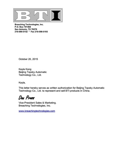 2015年10月26日 ,北京凌天成為 美國(guó)BTI 公司 黑鷹撞門器 一級(jí)代理
