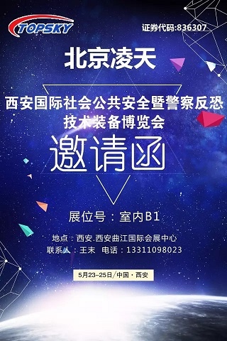 2017年5月23日-25日,西安國際社會公共安全暨警察反恐技術(shù)裝備博覽會將在西安曲江國際會展中心盛大召開。屆時,北京凌天將集中展示警用無人化作戰(zhàn)系列裝備、偵查反偵查、安檢排爆、反恐處突等系列高精尖警用裝備。