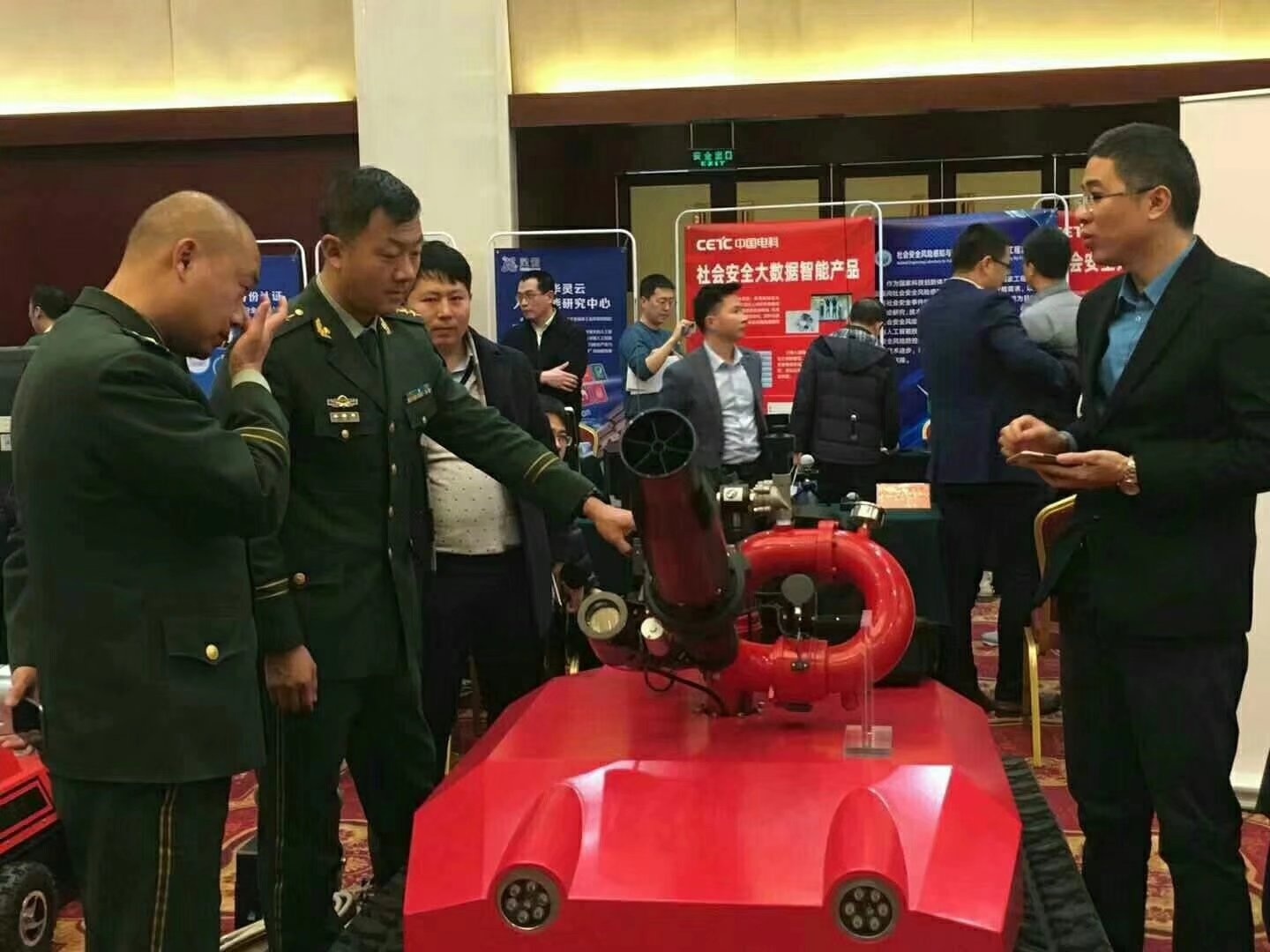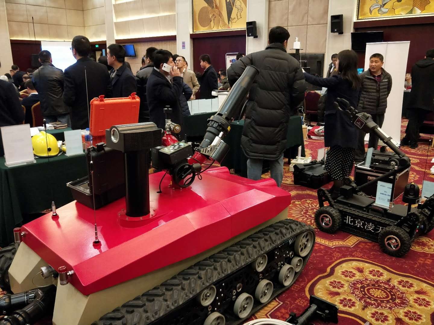 需求牽引,貼近實(shí)戰(zhàn),科技強(qiáng)警,科技興安,科學(xué)救援,用科技提北京城市安全水平,由中關(guān)村管委會(huì)主辦的中關(guān)村智慧公共安全新技術(shù)新產(chǎn)品供需對(duì)接會(huì)18號(hào)在北京舉行,北京市公安局、消防局、安監(jiān)局、市屬高校、市屬國(guó)企及區(qū)縣政府部門(mén)的80余家用戶單位200余人共同參加了活動(dòng),現(xiàn)場(chǎng)氣氛熱烈,供需雙方都有收獲。北京凌天主要負(fù)責(zé)人作《智慧公共安全關(guān)鍵技術(shù)裝備》的專題報(bào)告,向參會(huì)專家介紹了北京凌天將機(jī)器人,人工智能,物聯(lián)網(wǎng)技術(shù)應(yīng)用于公共安全的最新技術(shù)成果。來(lái)自警保,特警,消防后勤裝備,安監(jiān)科技規(guī)劃等使用部門(mén)的專家,對(duì)消防滅火偵察機(jī)器人,全地形排爆機(jī)器人,消防偵察機(jī)器人,應(yīng)急救援快速部署系統(tǒng),安監(jiān)巡邏車,安全監(jiān)管立體化預(yù)警預(yù)測(cè)系統(tǒng)等表示濃厚興趣!