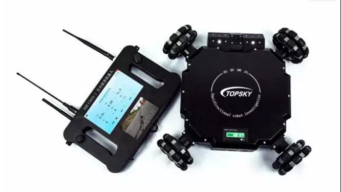 四輪全方位升降偵察機器人是一款集全方位視頻監(jiān)控、可升降云臺、有毒有害氣體探測系統(tǒng)為一體的移動偵查平臺。體積小,有較強的攀爬和越障性能,可部署在狹小空間,威脅、危險區(qū)域執(zhí)行隱秘偵察和監(jiān)測任務。配裝的后場手持終端實時顯示移動端全景圖像,操作人員可以隱蔽觀察控制,通過手持端圖像或數(shù)據(jù)信息完成前端環(huán)境判斷,降低了在建筑物、地下室、山洞、隧道、街巷和可疑氣體泄漏區(qū)域內行動的危險性。