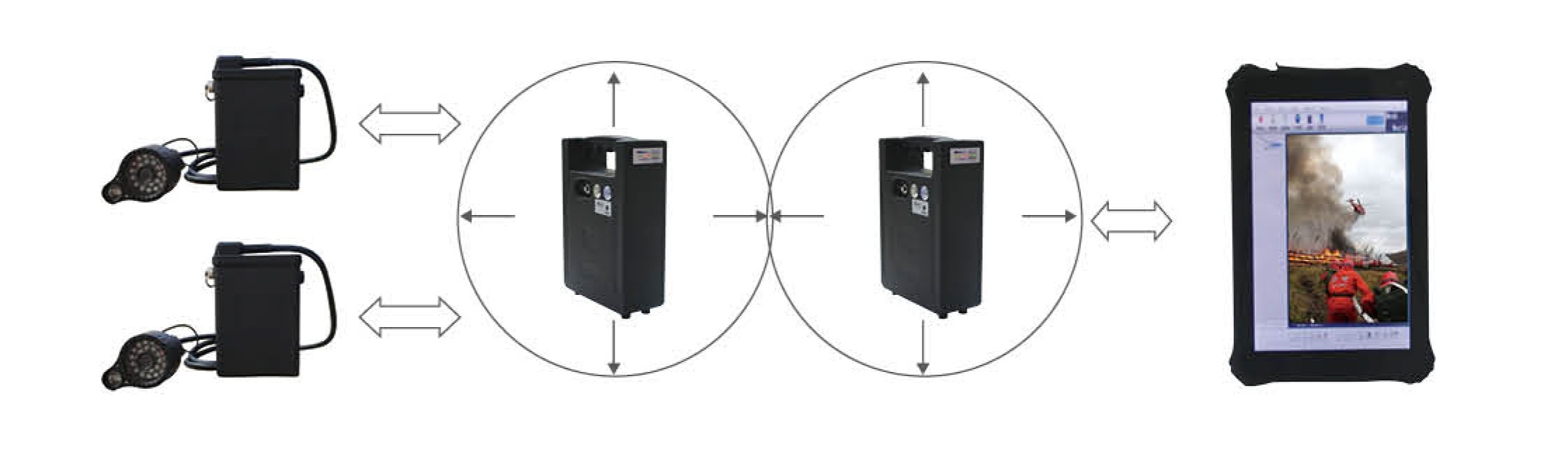 該裝置采用無線連接方式的信號(hào)中繼與傳輸,應(yīng)急通信網(wǎng)絡(luò)的通信距離可達(dá)20公里。無線通信網(wǎng)絡(luò)采用自組織、自愈合方式快速形成多跳鏈狀或網(wǎng)狀網(wǎng)拓?fù)浣Y(jié)構(gòu),無線通信距離不小于2000米,具有快速部署、高帶寬、低時(shí)延、可靠性強(qiáng)等特點(diǎn)。井下救援人員或工作人員,通過佩戴礦用本安型平板計(jì)算機(jī)、配套的低照度攝像頭自帶語音通話、無線中繼器、多參數(shù)測(cè)定儀等裝備,將現(xiàn)場(chǎng)的實(shí)時(shí)圖像、語音、環(huán)境參數(shù)等信息實(shí)時(shí)回傳到指揮平臺(tái),調(diào)度指揮人員可以實(shí)時(shí)了解現(xiàn)場(chǎng)情況,并對(duì)現(xiàn)場(chǎng)人員進(jìn)行調(diào)度指揮。