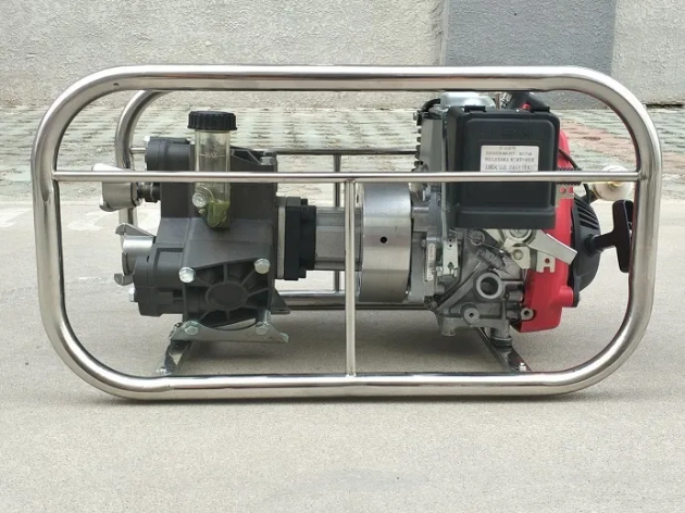 不銹鋼架,便于攜行。泵軸水平布置,減少震動(dòng) 水泵泵體為柱塞液壓隔膜泵。允許砂石顆粒通過(guò),對(duì)水質(zhì)要求低,對(duì)發(fā)動(dòng)機(jī)功率損耗小。 泵組可在橫向、縱向傾斜達(dá)到25°時(shí)正常工作。 水帶直徑40mm,爆破壓力18MPa,表層滌綸長(zhǎng)絲,內(nèi)襯進(jìn)口橡膠,高壓森林接口連接。 水泵配備的動(dòng)力裝置為強(qiáng)制風(fēng)冷四沖程汽油機(jī)。