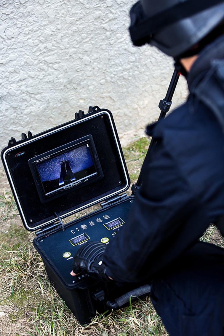 整套完整的系統(tǒng)裝在一個(gè)攜帶箱內(nèi),可以迅速安裝設(shè)置,操作簡(jiǎn)便。在反恐行動(dòng)中,對(duì)房間內(nèi)部情況的了解至關(guān)重要。靜音電鉆可以在不被犯罪分子察覺的情況下在墻上鉆孔,然后伸入蛇眼探頭觀察房間內(nèi)部狀況。