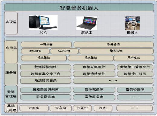 警務(wù)服務(wù)機(jī)器人總體涵蓋一鍵報(bào)警、生活咨詢(xún)、情況反饋、警務(wù)咨詢(xún)、政務(wù)資訊、宣傳服務(wù)、報(bào)案登記、用戶(hù)意見(jiàn)八個(gè)功能模塊,人機(jī)語(yǔ)音交互。同時(shí)解決“警力有限,民力無(wú)窮”,“人工智能+警務(wù)”的深化運(yùn)用,智能警務(wù)機(jī)器人應(yīng)運(yùn)而生,不僅提高警務(wù)科技含量,也極大緩解警員警力不足、警務(wù)工作效率低、人民群眾辦事難的問(wèn)題。