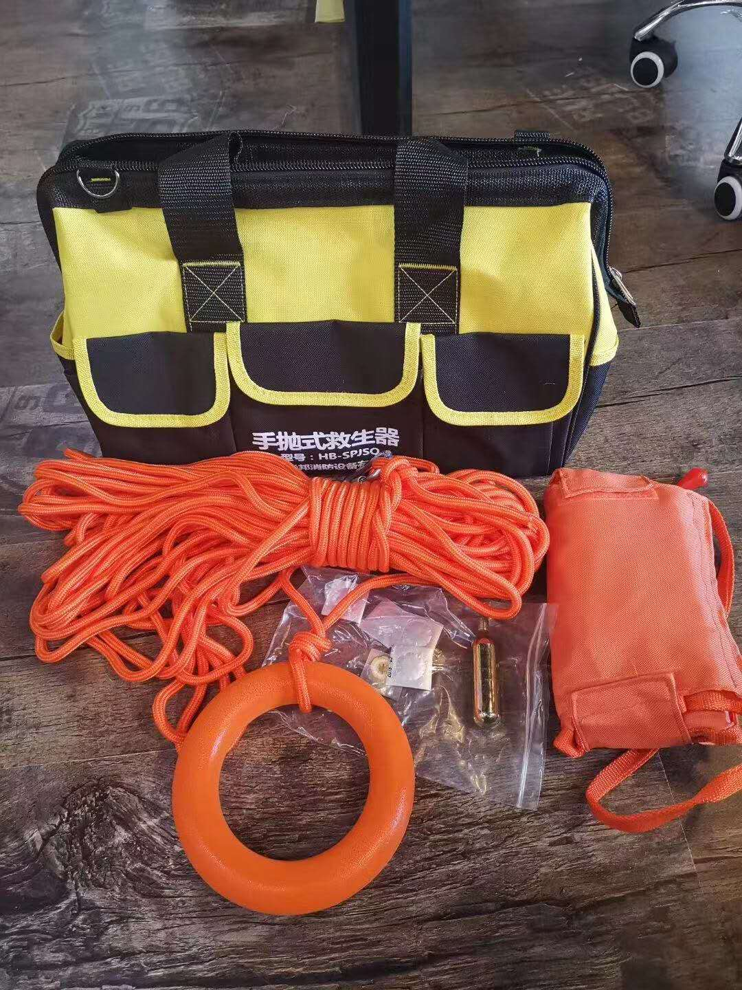 可遠距離投擲,可自動充氣。每套配置4 枚手拋彈頭,彈頭內(nèi)置自動救生圈,每發(fā)彈頭落水2.9秒內(nèi)自動打開形成具有浮力155N的救生圈。配置直徑8 毫米,長度30米水域救生繩一根。救生圈更換配件可實現(xiàn)多次重復(fù)使用。 配置:手拋彈頭。水域救援繩。水域救援手環(huán)。安全鉤。