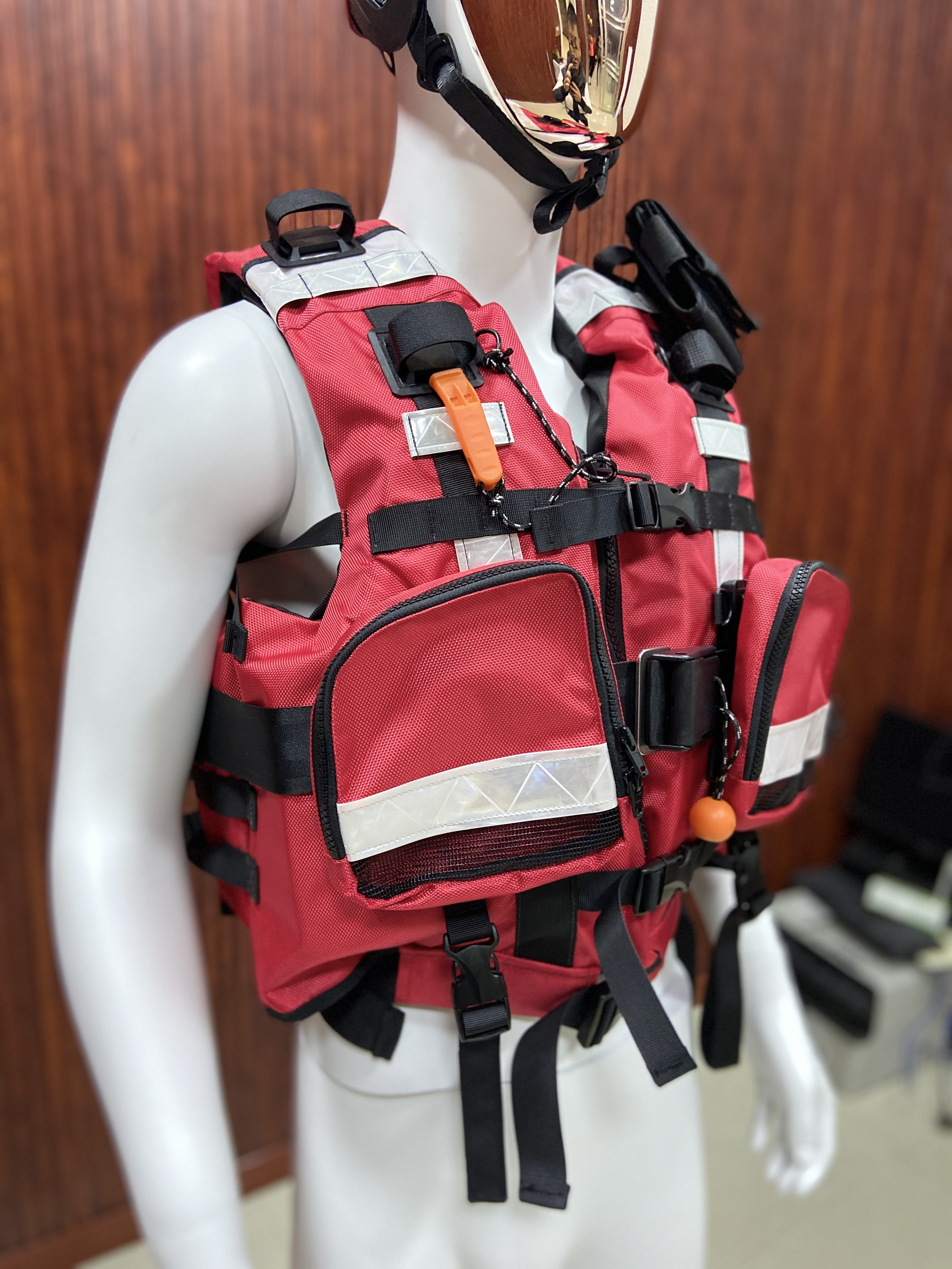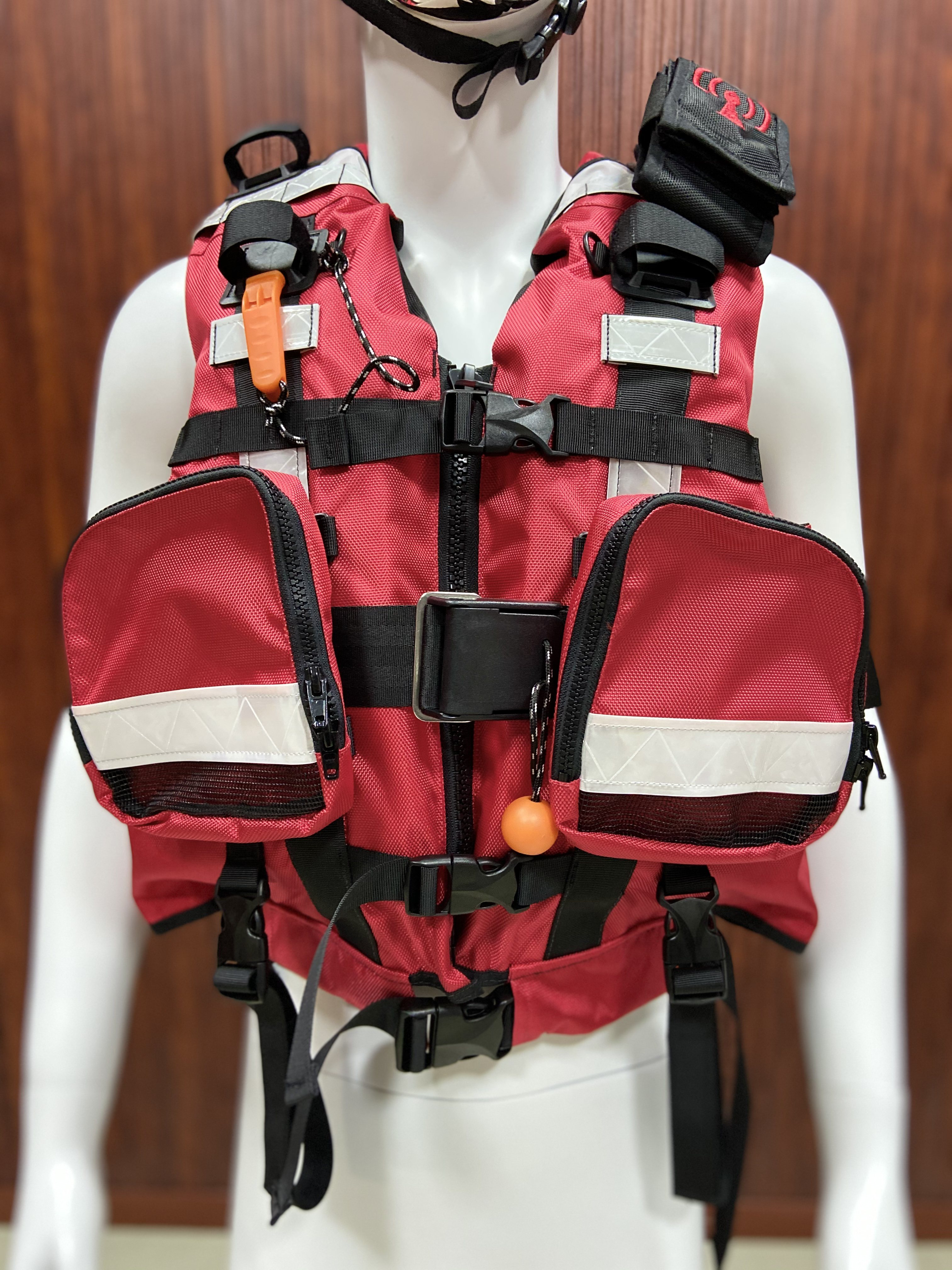 重型水域激流救援衣可產(chǎn)生22磅的浮力,相當于10千克重力,適合胸圍76- 145厘米使用者,方形針織壓力點和500D材質(zhì)的Cordura面料使得使用者可以應對任何困難情形。前置大口袋以及前置掛點,魔術(shù)貼可定制,配有快速釋放扣。穿脫方便。