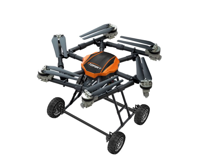 本陸空兩棲無(wú)人機(jī)平臺(tái)為北京凌天智能裝備集團(tuán)研發(fā)的集多旋翼無(wú)人機(jī)與陸地行駛系統(tǒng)于一體的陸空兩棲無(wú)人機(jī)平臺(tái)(多用途偵檢無(wú)人機(jī)),采用六旋翼機(jī)身設(shè)計(jì),配備可快拆的陸地行駛系統(tǒng),能夠空中飛行與地面行駛兩種模式間自主或受控切換,既能空中飛行,又可陸地行駛。載重大,續(xù)航長(zhǎng),并且機(jī)體折疊標(biāo)準(zhǔn)化負(fù)載接口、集成航電系統(tǒng)、核心傳感器雙冗余備份系統(tǒng)。搭載長(zhǎng)距離實(shí)時(shí)通訊鏈路,實(shí)時(shí)傳輸現(xiàn)場(chǎng)環(huán)境數(shù)據(jù)及無(wú)人機(jī)飛行數(shù)據(jù)。配備智能控制系統(tǒng),可滿足多種場(chǎng)景和多種方式的作業(yè)需求。本陸空兩棲無(wú)人機(jī)平臺(tái)可適應(yīng)復(fù)雜多變的環(huán)境與任務(wù)需求,極大地?cái)U(kuò)展了傳統(tǒng)無(wú)人機(jī)的作業(yè)邊界。可搭載多種載荷,如:四光吊艙、氣體檢測(cè)儀、喊話器,滿足環(huán)境偵查、應(yīng)急教援、安全疏導(dǎo)、氣體檢測(cè)等不同場(chǎng)景的行業(yè)應(yīng)用。