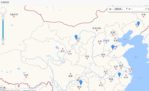 車輛信息管理功能,可在地圖上查閱所有車輛標注當前位置及點擊某個具體的車輛,顯示該車輛的車牌號、車輛類型、車輛名稱、車輛狀態(tài)、車輛經(jīng)緯度坐標、車輛及功能描述詳情。