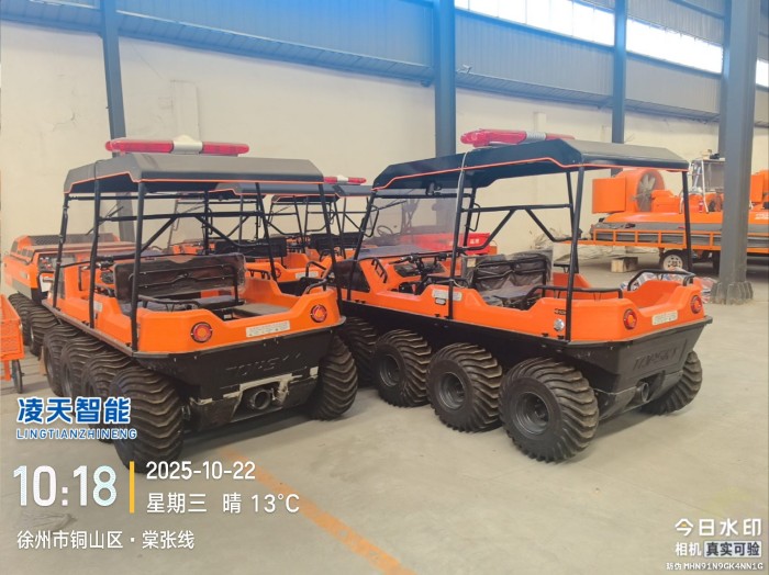 以完成可靠的野外應(yīng)急救援為目的,該水陸兩棲全地形車可提供一種安全的運輸方式和可靠的運載平臺,產(chǎn)品可以在山地環(huán)境、濕地環(huán)境、沼澤環(huán)境、水面環(huán)境、叢林環(huán)境等多種工作環(huán)境下,實現(xiàn)全天候連續(xù)作業(yè)。并且可以在災(zāi)害現(xiàn)場巡邏勘察、運送受傷人員、并有效實施援救。