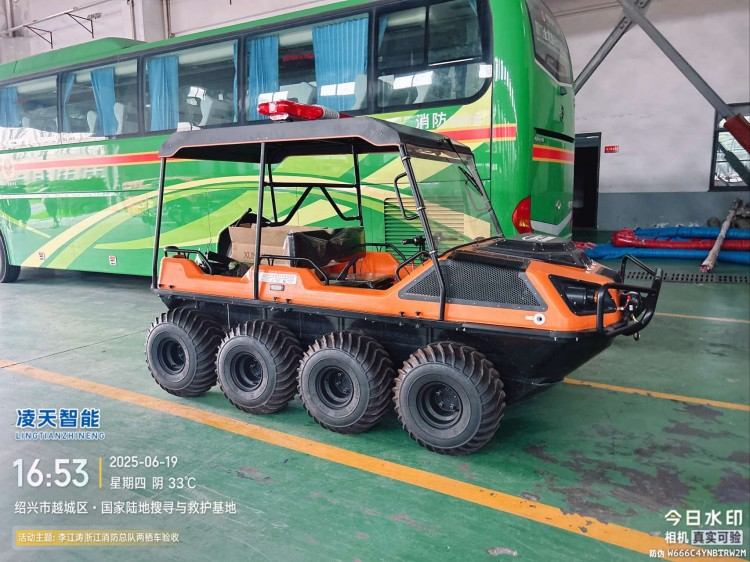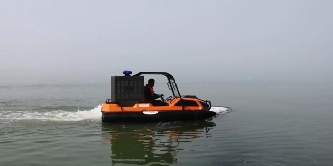 針對水災(zāi)頻發(fā)的地區(qū),水域救援任務(wù)必不可少。但往往洪澇災(zāi)害、城市內(nèi)澇往往伴隨著惡劣的天氣和崎嶇的地形,沖鋒舟需要多次搭載不同交通工具并數(shù)次轉(zhuǎn)移,水陸兩棲全地形車可以輕松通過水淹、泥濘、沼澤等環(huán)境,無需人力搬運,實現(xiàn)陸地駕駛和水中行走自由切換,以最快的時效抵達現(xiàn)場實施救援。