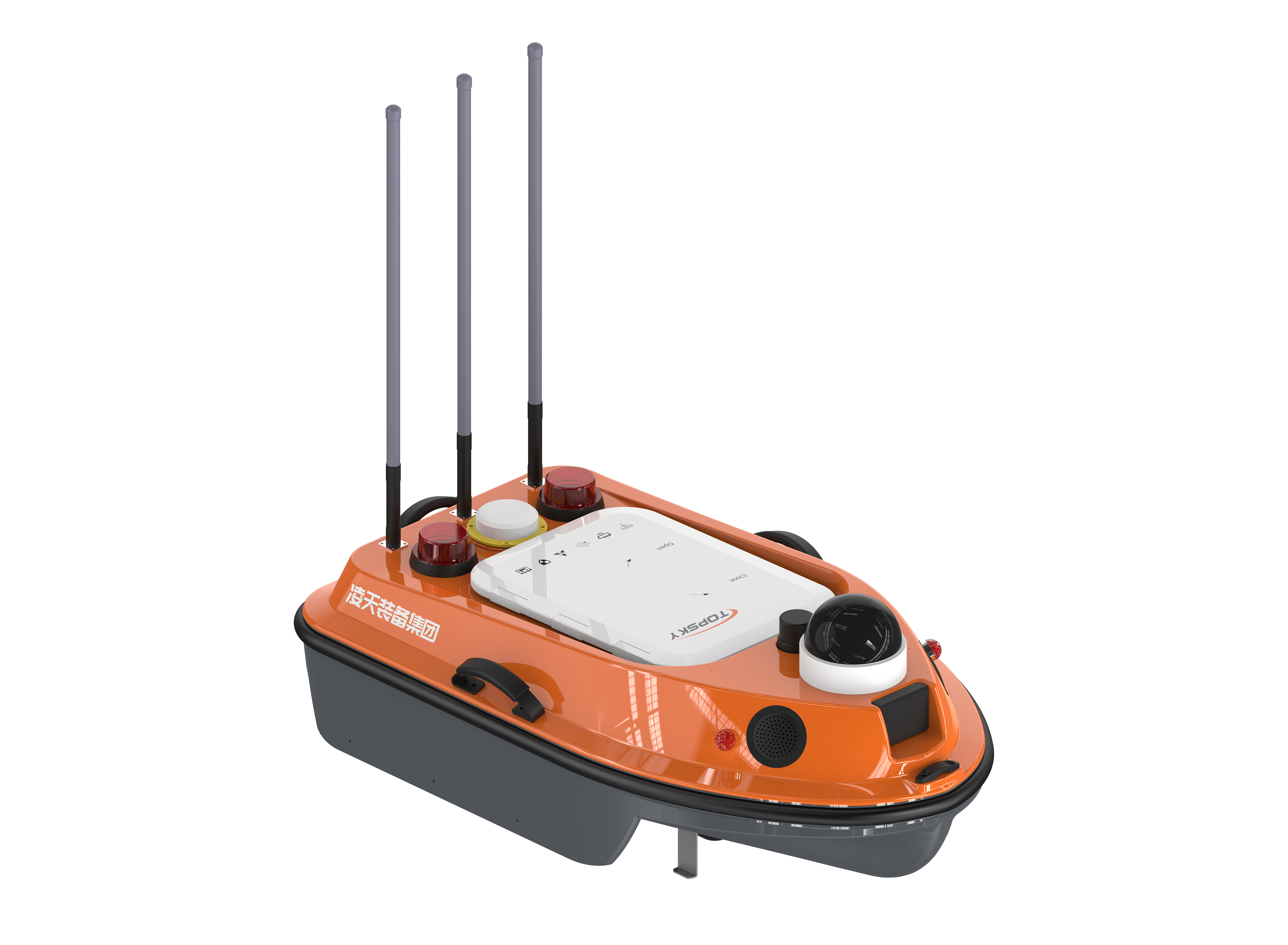 USV-R5.0 水下搜爆機器人,船休采用高分子耐腐蝕復(fù)合材料,強度高;M型三體設(shè)計,重心低、阻力小、航行穩(wěn)、吃水淺;采用整體密封設(shè)計,船身安裝防撞條,防碰撞,重量輕,載重大,智能化控制系統(tǒng),自動姿態(tài)糾正,確保航行穩(wěn)定;模塊化涵道式推進器,可快速拆卸,與船低齊平;可根據(jù)不同任務(wù)需求搭載傳感器設(shè)備應(yīng)用于不同領(lǐng)域,提高效率和安全。