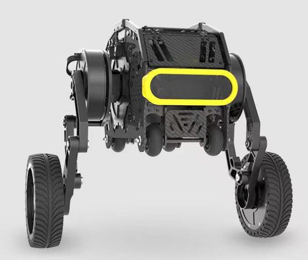 本款雙足機(jī)器人是一種足部裝有動力輪子的雙足平衡式移動機(jī)器人。這臺機(jī)器人可以將輪式機(jī)器人的速度優(yōu)勢,和足式機(jī)器人的機(jī)動越障性能結(jié)合,可以在多地形下高效、靈活的運動。這種機(jī)器人也是當(dāng)下學(xué)術(shù)研究的熱點。機(jī)器人的腿部和機(jī)體結(jié)構(gòu)由本末科技自主研發(fā)設(shè)計,總共由六個直驅(qū)型關(guān)節(jié)電機(jī)M1502D驅(qū)動。