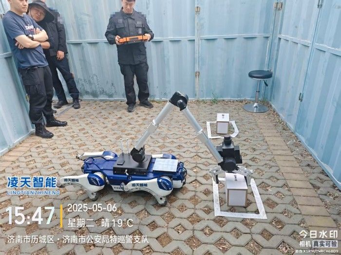 6自由度排爆機械臂能實現(xiàn)不同角度旋轉,最大可抓舉10kg的重物,機械臂裝載爆炸物銷毀器,可現(xiàn)場摧毀爆炸物,四足式底盤,能適應各種地形快速作戰(zhàn)部署。