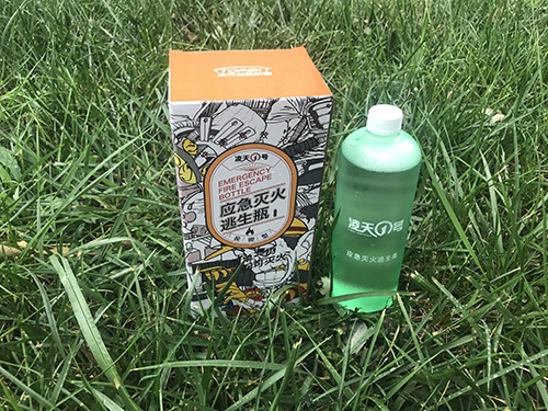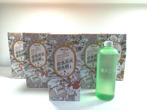 應(yīng)急逃生滅火瓶為滅火劑裝于環(huán)保可降解的特殊樹脂瓶中,只需投擲于火源中,滅火瓶觸碰到物體即可破碎,滅火劑會(huì)從破裂的瓶中瞬間散布出來, 在燃燒物表面流散的同時(shí)液體冷卻其表面,并在燃燒物表面上形成一層水膜與泡沫層共同封閉燃燒物表面,隔絕空氣,形成隔熱屏障,吸收熱量后的液體汽化并稀釋燃燒物表面上空氣的含氧量,對(duì)燃燒物體產(chǎn)生窒息作用,阻止了燃燒的繼續(xù);同時(shí),該滅火劑與燃燒物質(zhì)發(fā)生化學(xué)反應(yīng),形成聚合物質(zhì),該聚合物質(zhì)能有效地抑制或降低燃燒自由基的產(chǎn)生,破壞燃燒鏈,阻止燃燒.