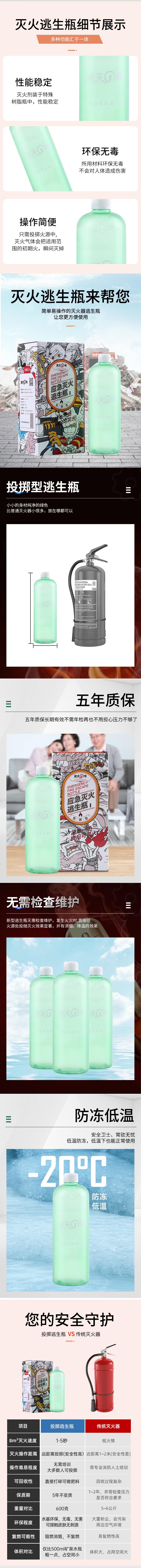 7)環(huán)保:原材采用純植物提取環(huán)保無毒、無腐蝕,殘留的物質(zhì)轉(zhuǎn)化為養(yǎng)分發(fā)酵滋養(yǎng)森林植被,瓶內(nèi)裝有滅火劑PH值為中性,無腐蝕無污染。