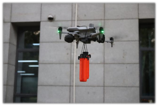 一款具備紅藍(lán)爆閃燈和拋投器的二合一裝備。能在惡劣氣候條件下可靠工作,通過(guò)接口,可掛載在無(wú)人機(jī)上使用,具備底部5秒快速安裝的能力,具備2段拋投功能可實(shí)現(xiàn)2個(gè)掛載物分別拋投,同時(shí)每個(gè)拋投點(diǎn)實(shí)現(xiàn)2種拋投模式:綁帶拋投,掛線拋投。