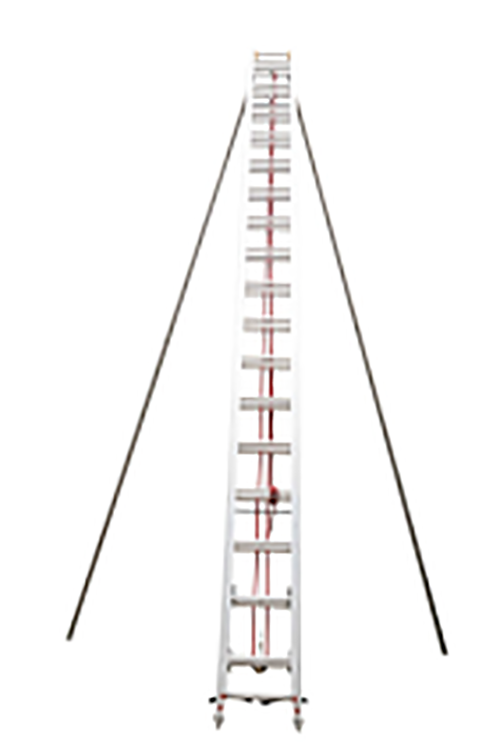 選用高強(qiáng)度鋁合金材料制造而成。梯身分為上下兩節(jié),上節(jié)梯納入下節(jié)梯,