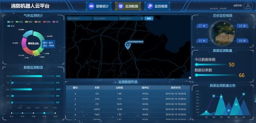 消防機器人云平臺集機器人分布、機器人統(tǒng)計、視頻、氣體、語音、控制等集成于一體,做到全局把控、機器人監(jiān)測、全生命周期綜合使用及可視化操作。當遇到突發(fā)事件時,能在線直觀的分析并高效的了解到設(shè)備實時狀態(tài)。