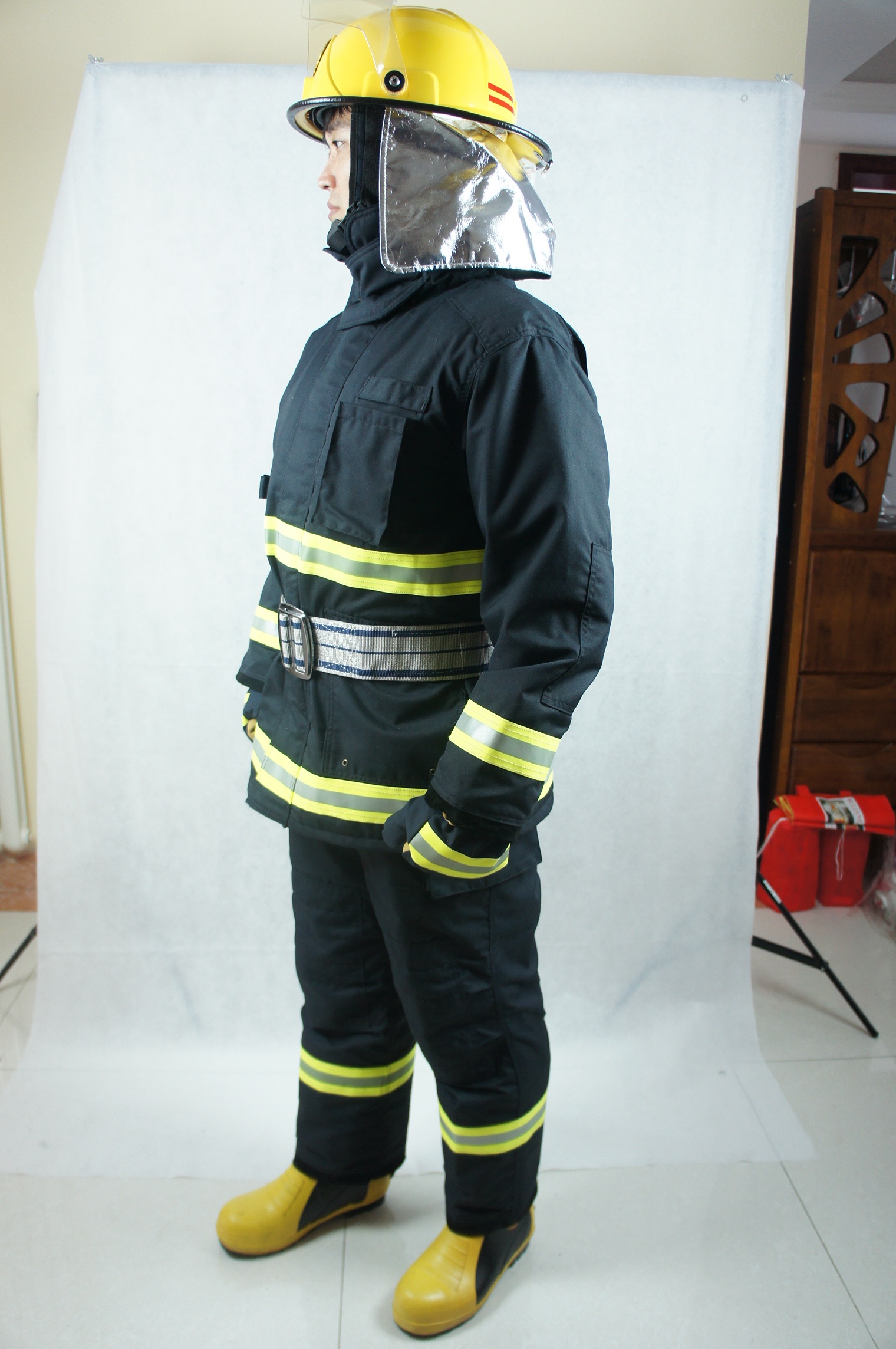 消防員在滅火戰(zhàn)斗時穿著的防護服裝。該服裝是根據(jù)GA10-2014的標準要求設計、生產(chǎn)的(該服裝符合GA10-2014的標準要求),并通過了國家消防裝備質量監(jiān)督檢驗中心的檢測。可用于穿著近火作業(yè)防止熱量對人體的侵害,是滅火作業(yè)時基本、適宜的個人防護裝備