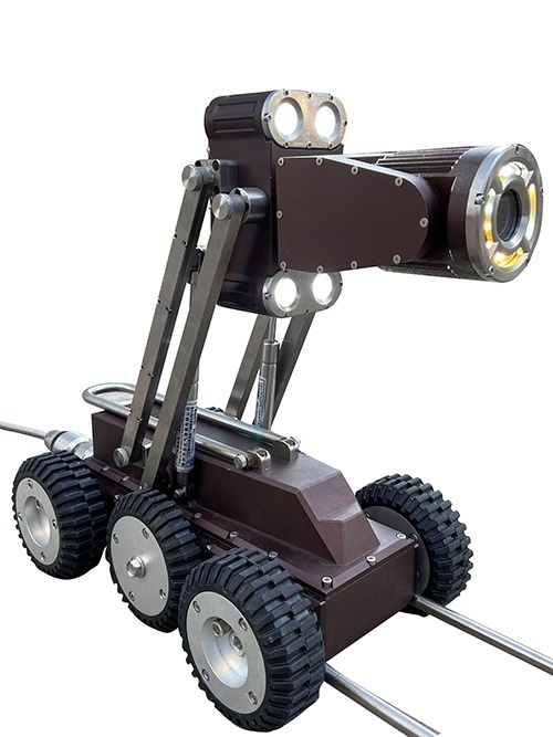 針對煤礦井下發(fā)生事故后,救援人員不能及時了解現(xiàn)場情況的問題,設(shè)計并研制了一種鉆孔救援機器人,該產(chǎn)品是由爬行器(攝像頭)、鉆孔自動(手動)盤線車、無線系統(tǒng)控制器 (電腦端)、電源適配器等部分組成,通過操作主控制機器人界面,可實現(xiàn)控制爬行器在孔內(nèi)行走,并將釆集到的救援孔內(nèi)部圖像通過線纜實時傳輸?shù)街骺刂破鬟M(jìn)行實時監(jiān)視,配合判圖軟件一鍵生成檢測報告。檢測系統(tǒng)還配有專業(yè)的控制軟件,可運行在windowslO系統(tǒng)上控制本套檢測機器人。可進(jìn)行圖像存儲。監(jiān)視圖像時如果發(fā)現(xiàn)人與物體,可以通過錄像或拍照記錄出來以便對其判斷、分析。在主控制器的顯示界面上,可以隨時了解爬行器的狀態(tài),包括傾角、氣壓、距離、速度、平臺高度、日期等相關(guān)信息。該裝置也可用于其他地質(zhì)鉆井探測中,基于礦山鉆孔救援探測需求,針對現(xiàn)有探測機器人信息探測范圍窄、探測距離較短、功能單一、無越障能力等問題,設(shè)計出礦山鉆孔救援探測機器人。